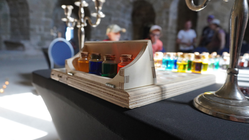 An der 2. Station, einem orientalischen Souk, musste man gut riechen können. Es gab einige Fläschchen, die teilweise falsch beschriftet waren. Man musste an den Flaschen riechen und dann sagen, was dort drin war.