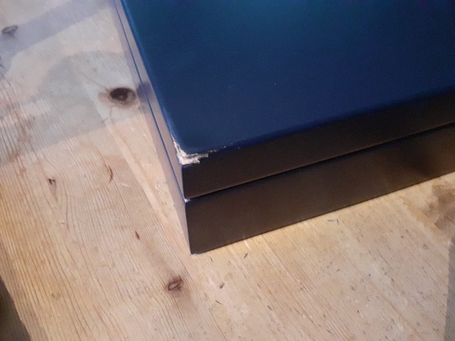 Bedauerlicherweise ist die Box mal heruntergefallen und dabei wurde eine Ecke leicht beschädigt. Mit etwas handwerklichen Geschick sollte es möglich sein, dies zu reparieren bzw. zu kaschieren.
