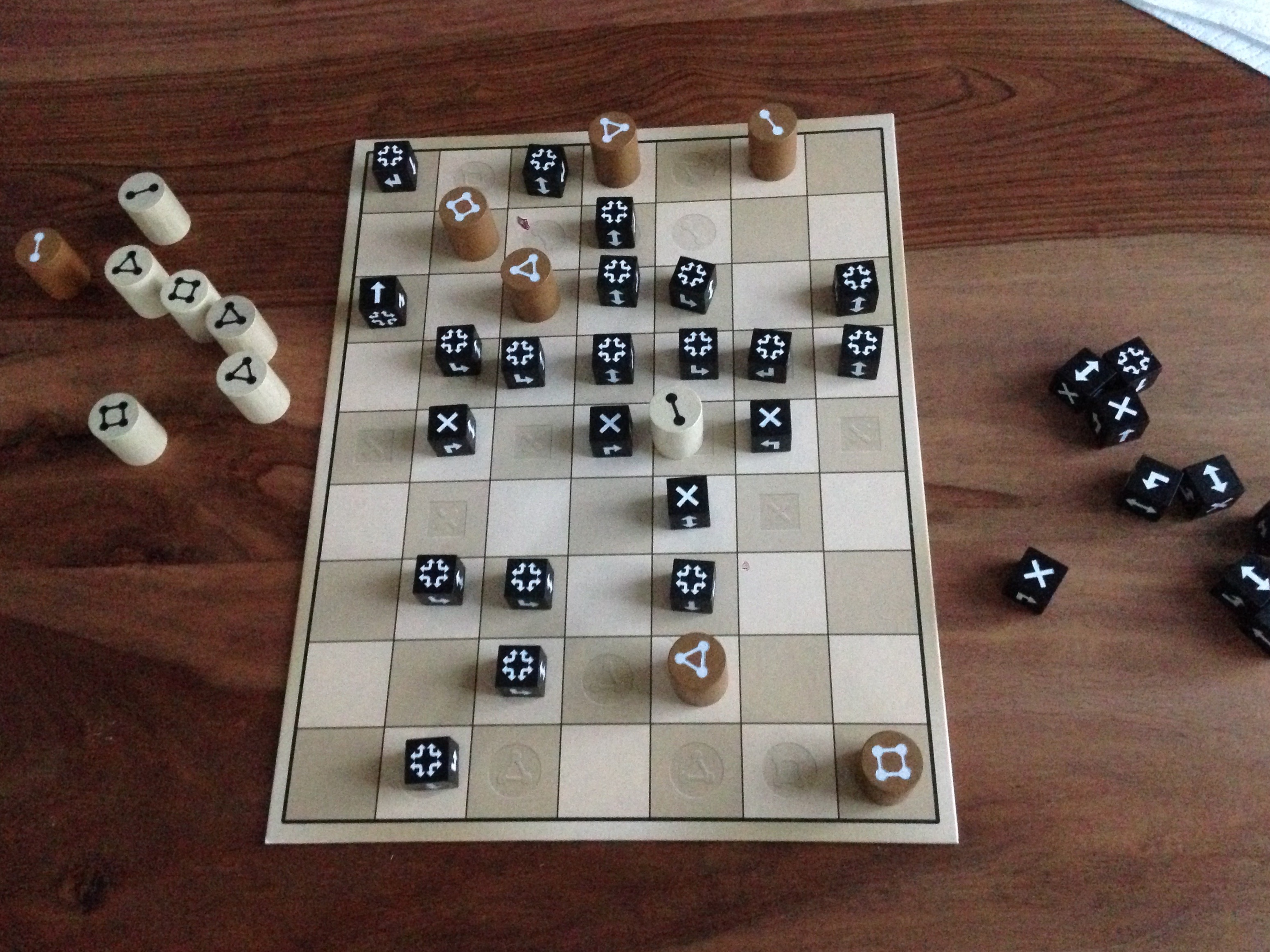 Nun konnten wir am Wochenende schonmal ein paar Runden ausprobieren. Fazit: sehr zu empfehlendes 2-Spieler-Spiel. Am Anfang erinnert es vom Aufbau etwas an Schach. Der Vergleich ist aber schnell verschwunden, da das Spielfeld durch die Barragoons, also die Blockadewürfel, immer kniffliger zu bespielen ist. Die taktischen Möglichkeigen sind echt Wahnsinn. Und man entdeckt immer wieder neue Strategien, die zum Erfolg führen könnten....