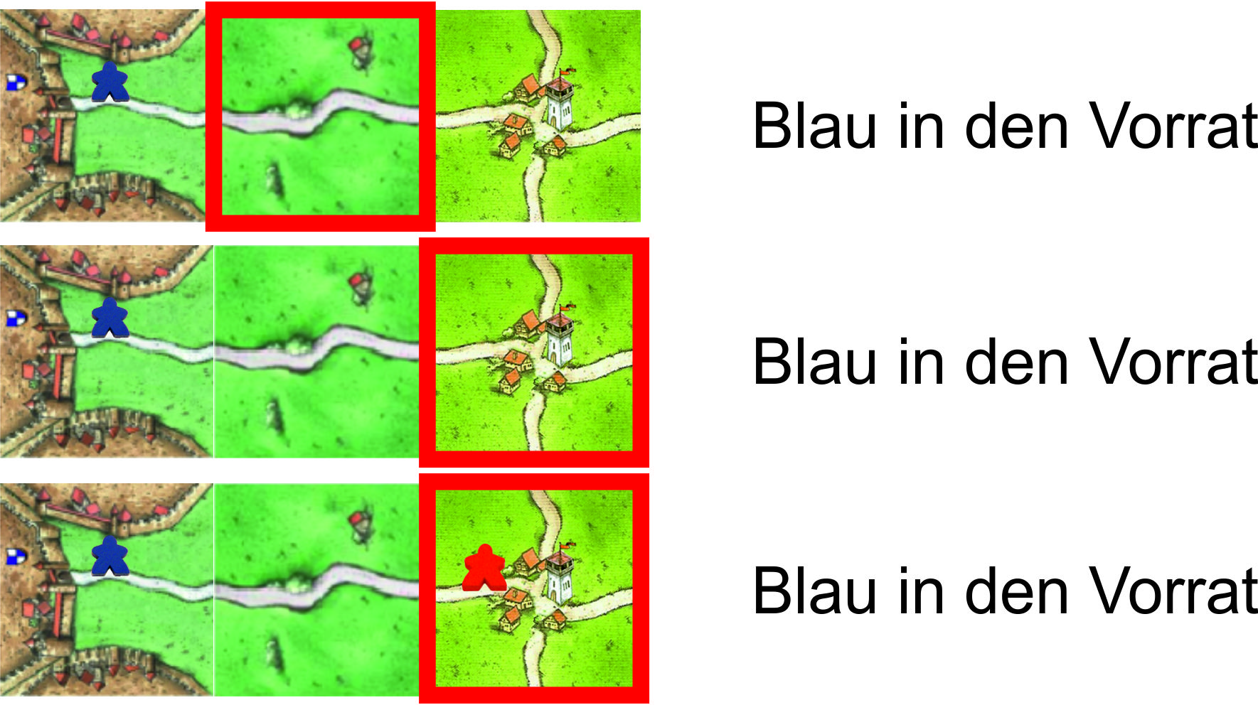 3.Bild) Wehrturm gelegt, Blau in den Vorrat und Rot kann GFM setzen.
