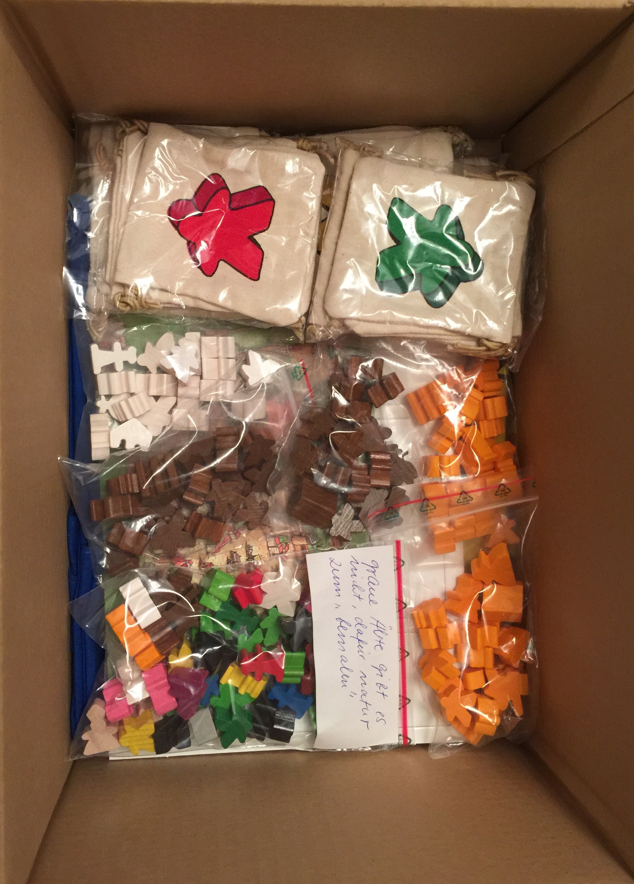 Wenn ich so zähle, sind in meiner Schachtel nur schlappe 30 Fan-Erweiterungen zu finden. Insgesamt sind das 462 Landschaftsplättchen.