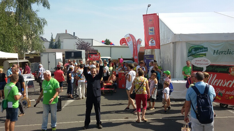 Am Samstag waren dann weitere CoT-Mitarbeiter anwesend. Da eigentlich alles vorbereitet war, ging es deutlich entspannter zu. Es war noch mit einem benachbarten Würstchen- und Bratenstand hinsichtlich der Nutzung einer Steckdose zu verhandeln, da wir ja eine kleine Verstärkeranlage in Betrieb nehmen mussten, die der Bauhof von Limbach bereits bereitgestellt hatte.