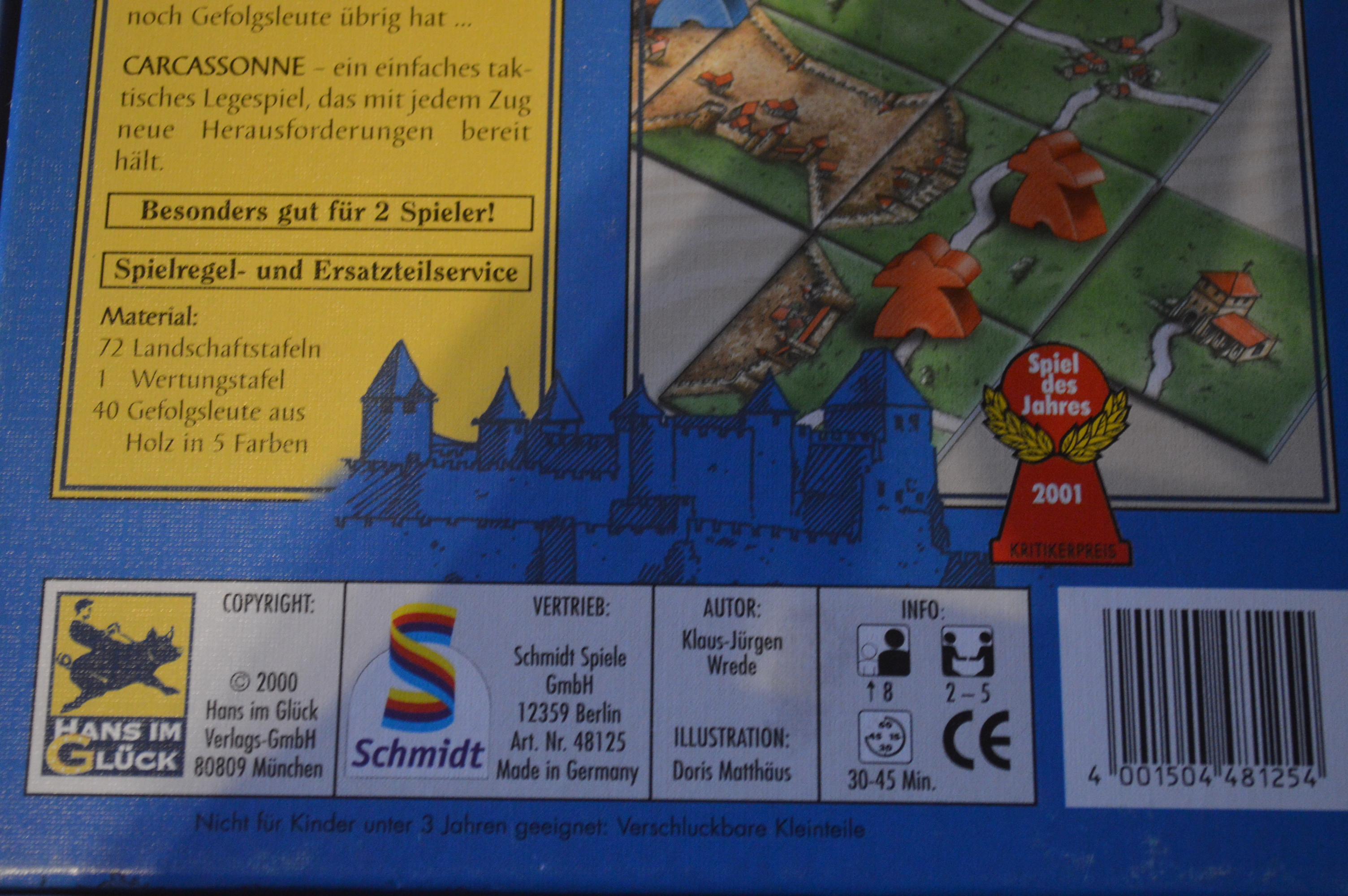 Ein Spiel aus dem Jahre 2000, aber schon mit dem Burgfräullein auf dem Cover und dem Spiel des Jahres 2001-Stempel.