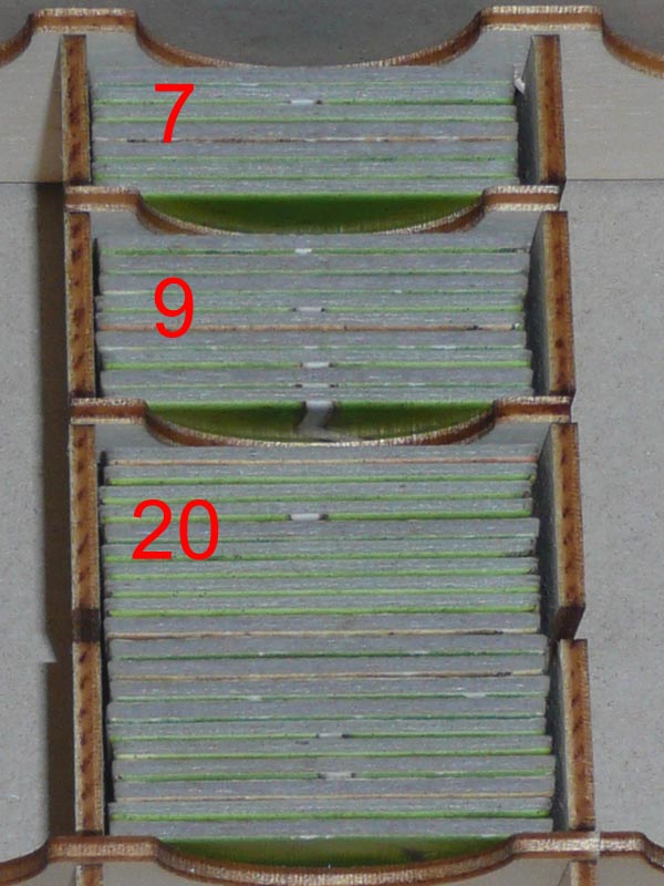 Mag sein das starker Karton bzw Pappe nicht unbedingt das ganz richtige ist, aber es braucht ja ordentlich verklebt ja bloß den Inhalt der Box zu tragen. Es läßt sich auch leichter zuschneiden als 3mm Sperrholz als Boden und der muss ja auch angeklebt werden.