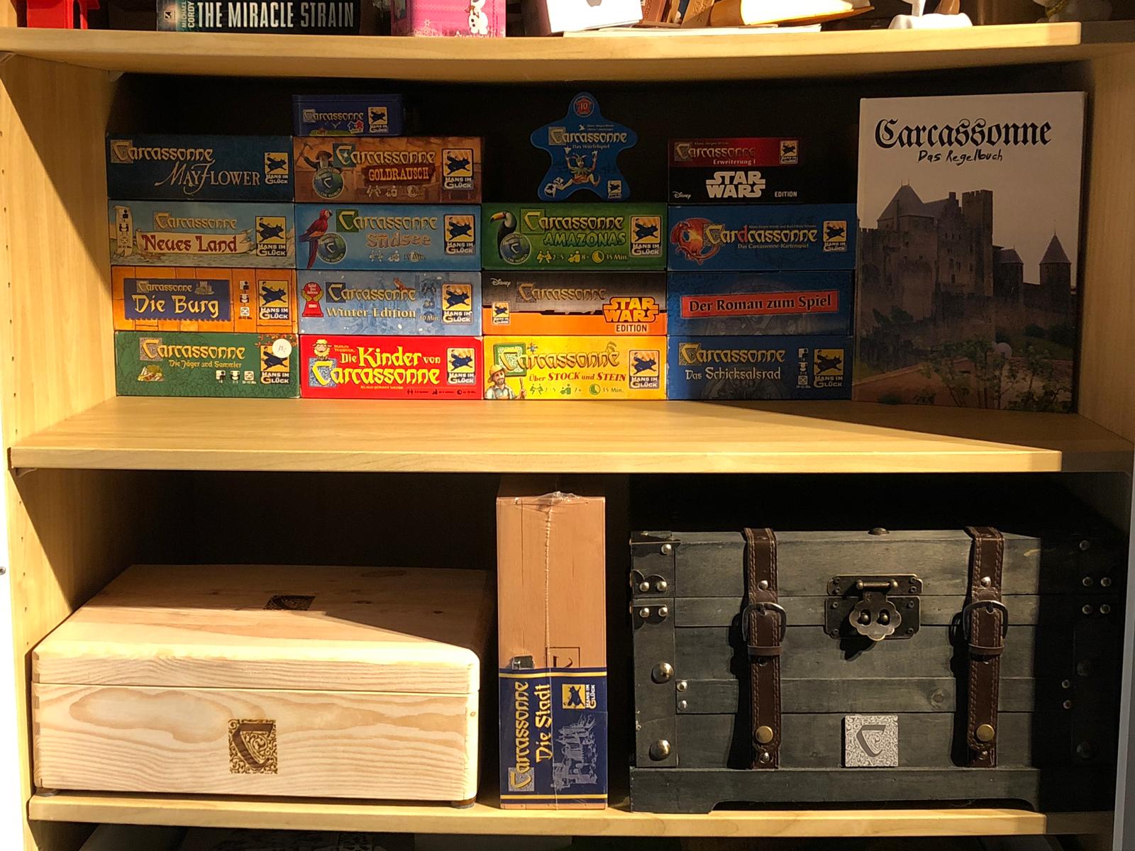 Aber das ist mein Carcassonne-Schrank. Vor etwas mehr als einem Monat stand da nur Das Grundspiel drin, alle Erweiterungen und einige Minis sowie die Winter Edition.