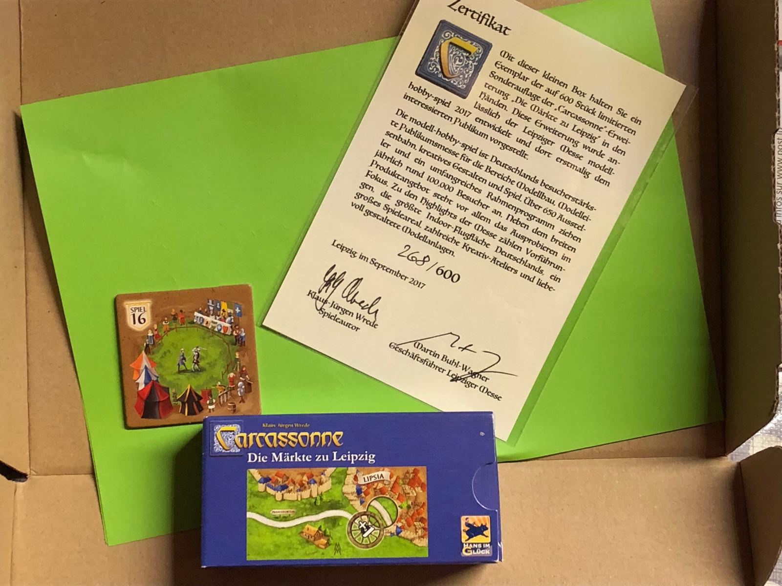 Und eben erhalte ich auch die preiswerte Carcassonne-Bigbox überreicht. Ja, ich konnte auch nicht widerstehen. :ymblushing: