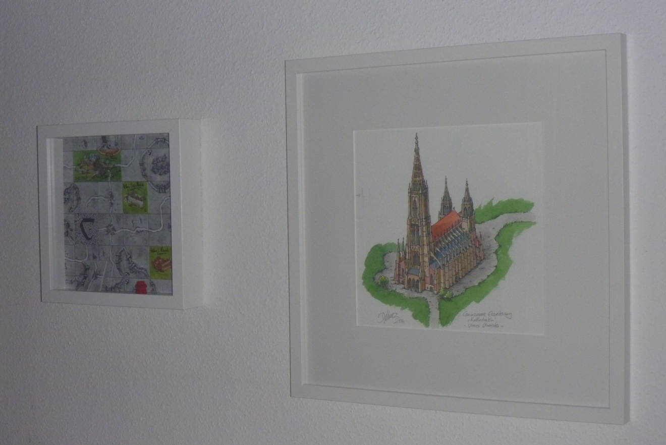 Zunächst einmal bedanke auch ich mich bei allen Beteiligten, die diese Auktion ermöglicht haben. Technisch und organisatorisch hat das ja bestens geklappt und ein tolles Ergebnis für den guten Zweck eingebracht. Besonders erwähnen möchte ich an dieser Stelle Doris, PresetM, Maik und Udo. Ohne deren Zutun könnte ich mich jetzt nicht täglich am Aquarell "Ulmer Münster" erfreuen. Auch ich habe das Bild seit Samstag in den Händen bzw. an der (Carcassonne-)Wand.