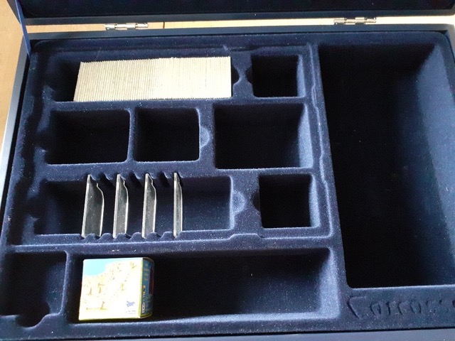 Bedauerlicherweise ist die Box mal heruntergefallen und dabei wurde eine Ecke leicht beschädigt. Mit etwas handwerklichen Geschick sollte es möglich sein, dies zu reparieren bzw. zu kaschieren.