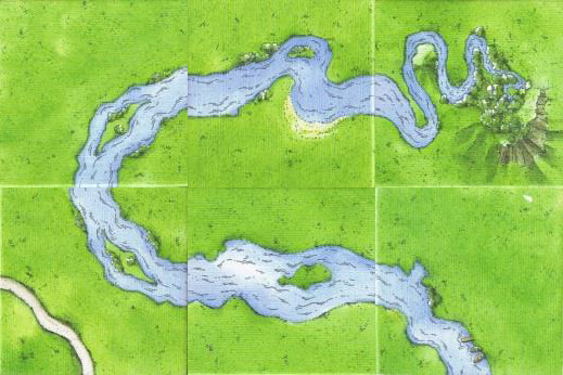 Dies hat mich dazu gebracht, aus „Dem Fluss II“ + vier weiteren Karten eine große „Startkarte“ zu basteln, auch wenn ich damit die Spielregel ausser Kraft setzte.