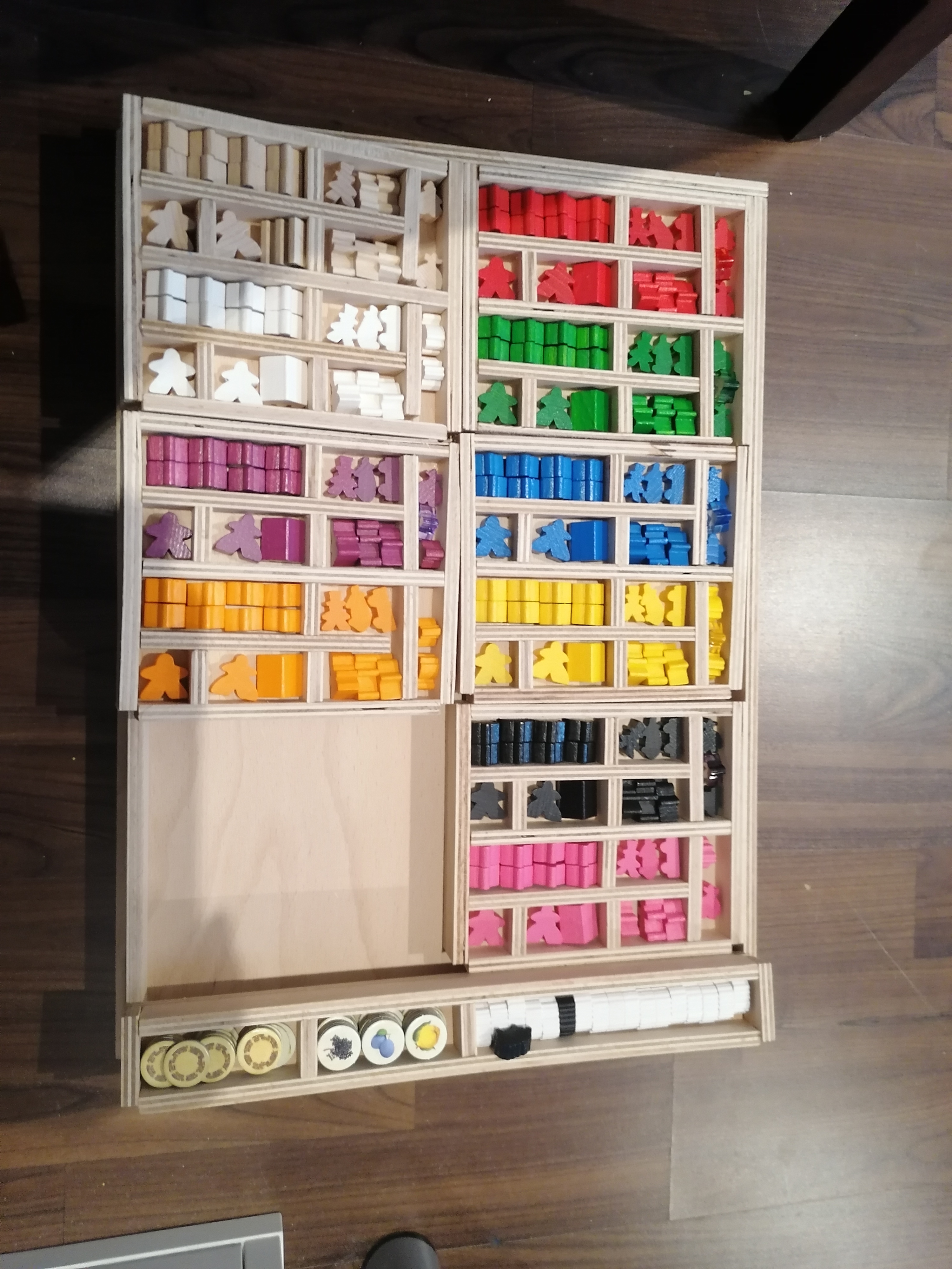 Ich habe mir gerade einen selbstgebaut, aus Holz, sodass alle "mir bekannten" Erweiterungen Platz finden. Auf 3 Ebenen verteilt, teilweise zum rausnehmen.Falls jemand nen neune Vorschlag hat, gerne her damit, bin auf der Suche nach nem Aufbewahrungssystem!