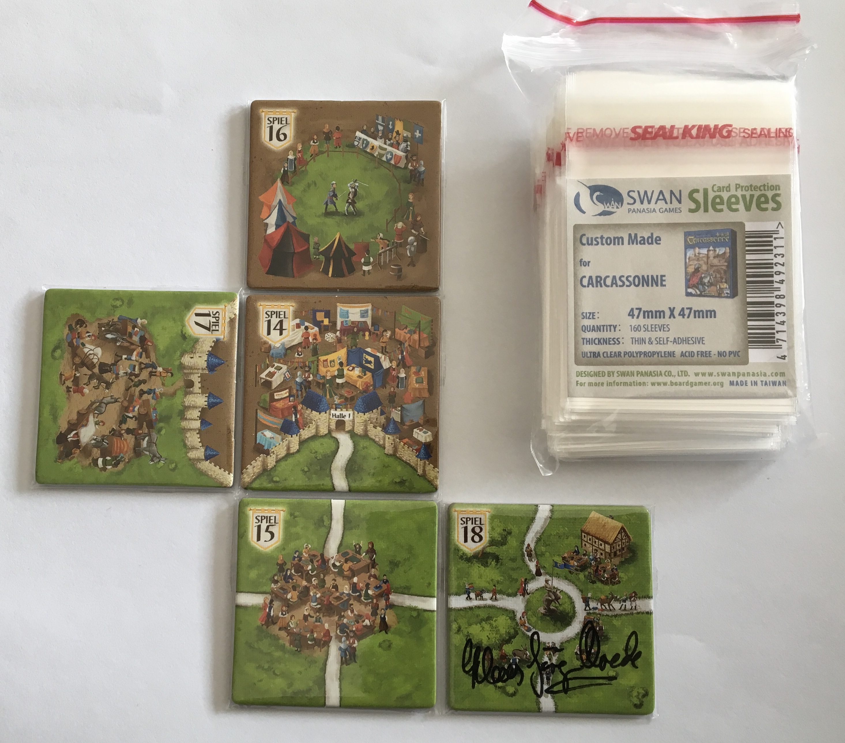 Nachdem Konrad mir den Tipp mit den Carcassonne Hüllen gegeben hat, sind diese nun bei mir eingetroffen, um meine Schätzchen zu schützen
