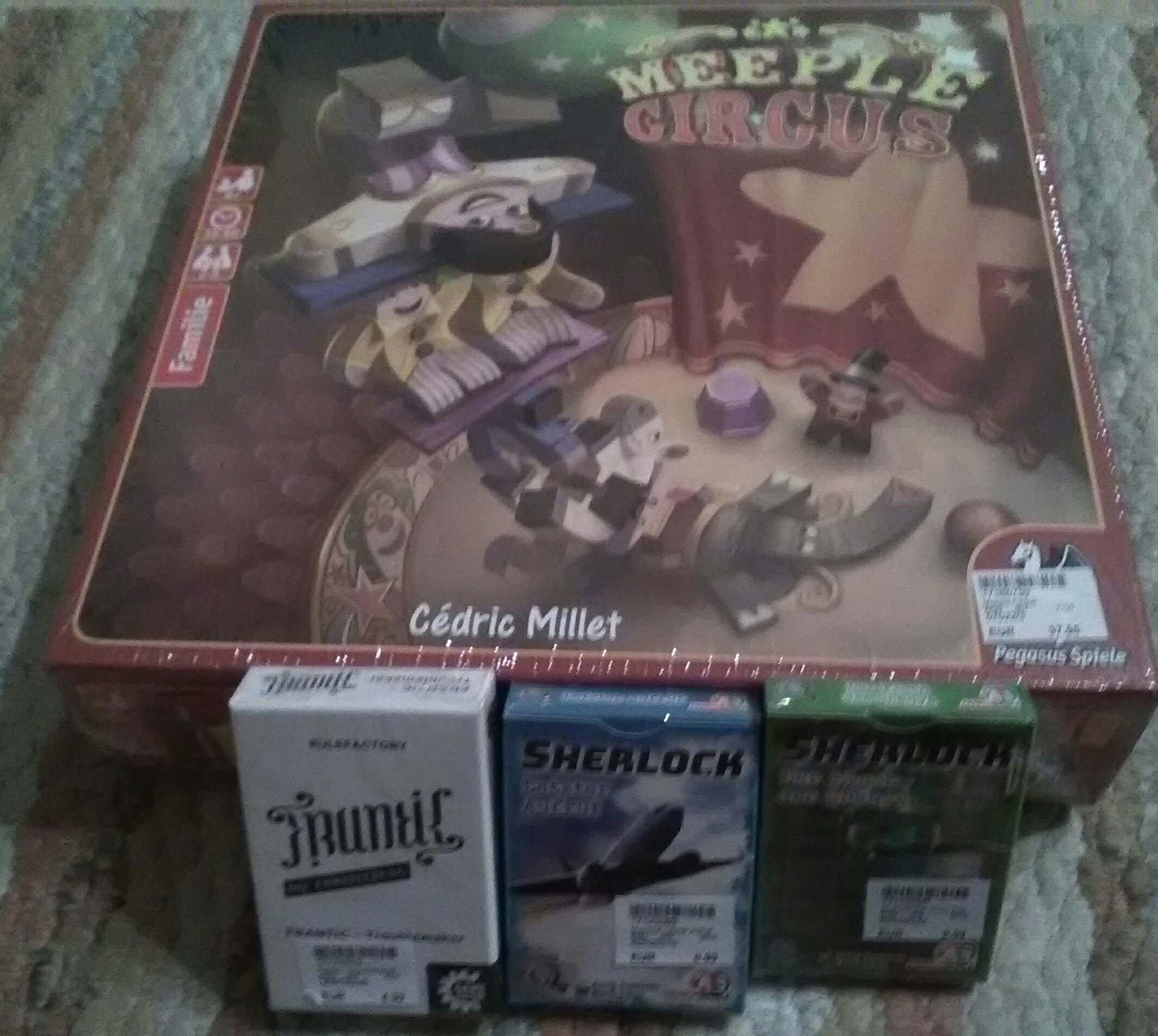 Gestern erreichten mich gleich 2 Pakete. Also neugierig ausgepackt und... Hurra, zwei der bei Kickstarter gebackten Spiele sind angekommen \o/