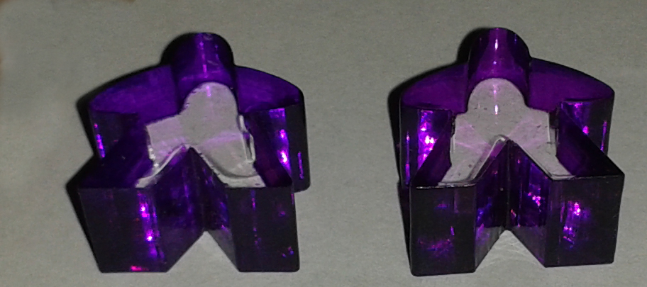 Mit den Unikaten kann ich leben, manche sind aber wirklich sehr klein um alle Meeple unter zu bringen. Diese befinden sich nun als unbenutzte Objekte in der Sammlung. Wenn cundco/HiG so viel für einen schlampig genähten Beutel verlangt, finde ich das frech.