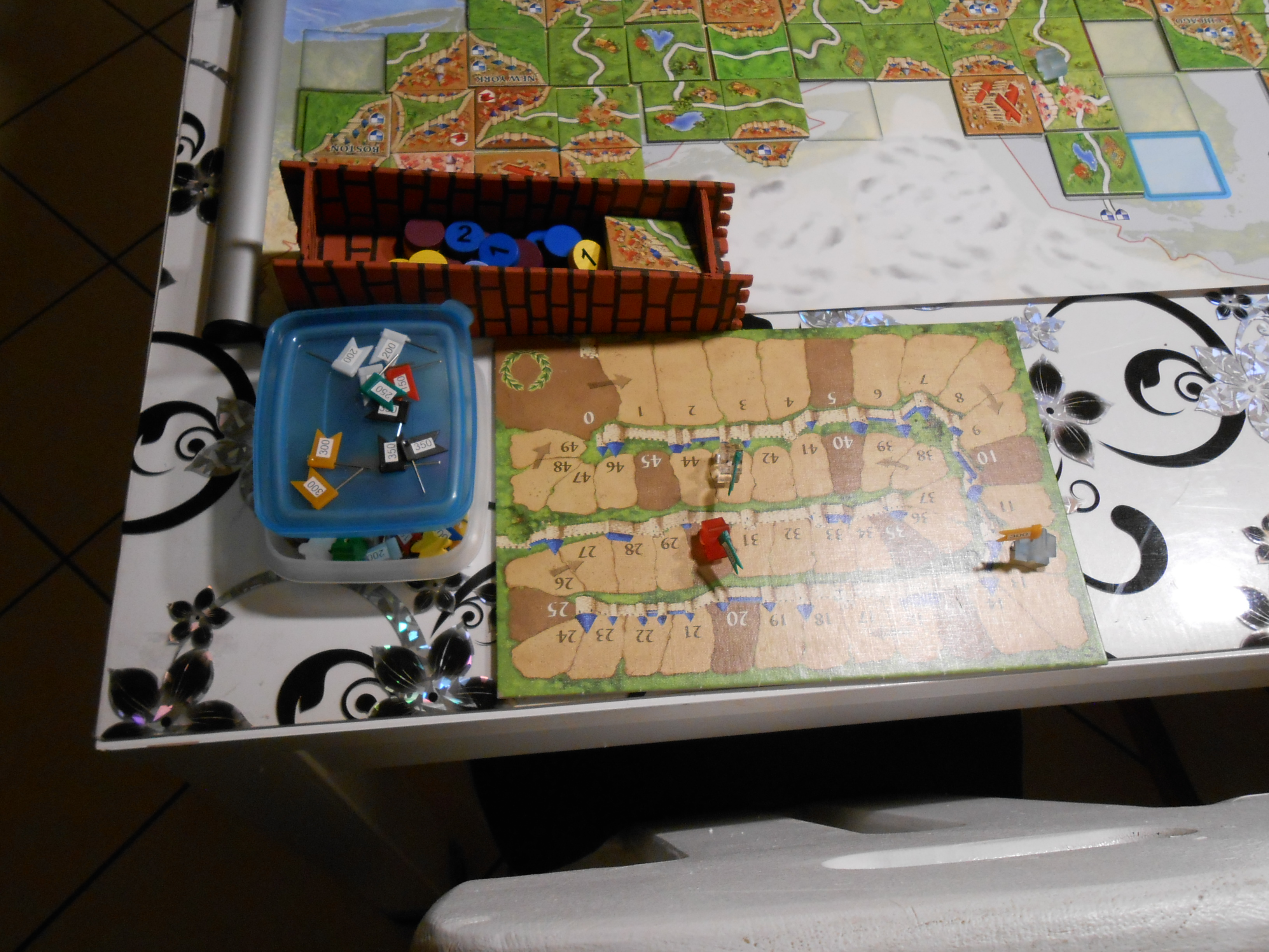 Carcassonne hatte ich auch noch dabei, aber, obwohl ich das mehrmals vorgeschlagen habe, hatte sie dazu keine Lust. Versteht sie selbst nicht so ganz, weil sie Carcassonne eigentlich sehr mag und wir noch 2 Erweiterungen haben (Manege frei sowie Die Zöllner) die wir noch nicht kennen aber gespannt drauf sind.. Naja, gibt halt im Moment bei uns Spiele auf die wir dann doch mehr Bock haben. Ich geb die Hoffnung trotzdem nicht auf (Ist nun schon das dritte Mal das ich Carcassonne mitschleppe, wir es aber dann nicht spielen…)