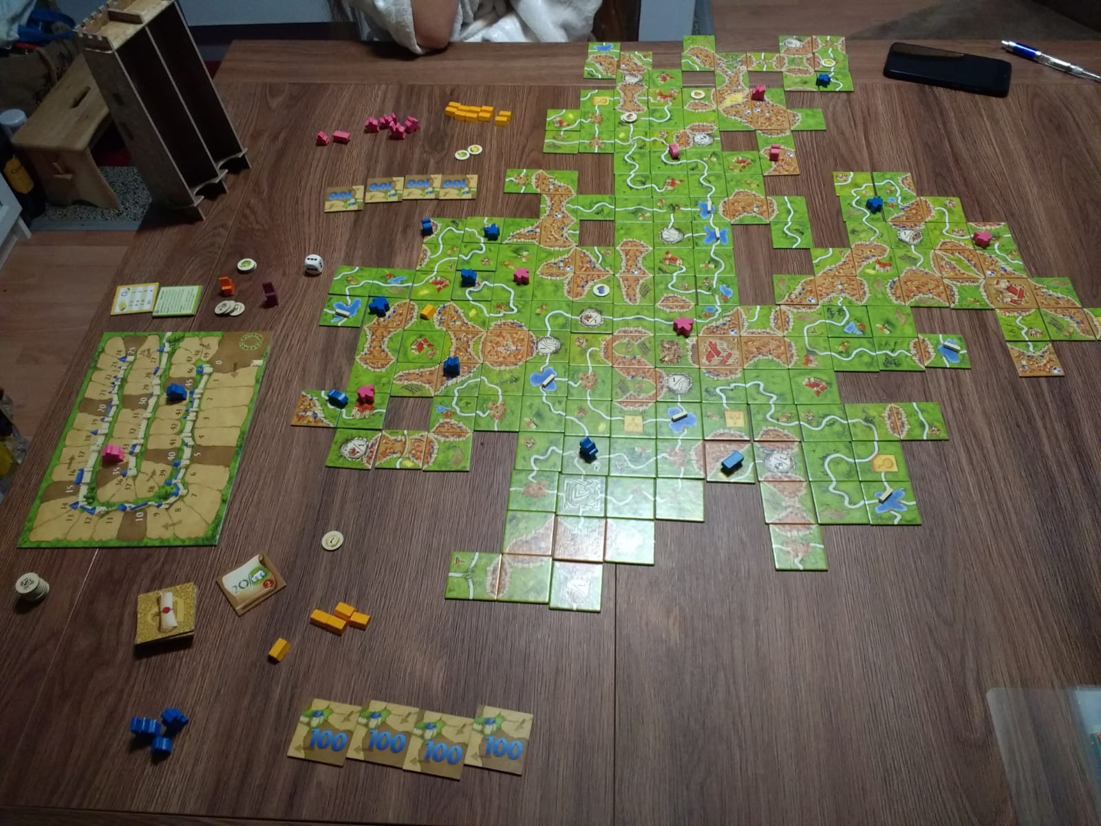 Wie immer Inkl. Händler und Baumeister, Wirtshäuser und Kathedralen, Abtei und Bürgermeister, Das Phantom, Das Labyrinth sowie Der Fluss. Auf Wunsch kam dann in den Spielrunden jeweils auch noch eine weitere Erweiterung hinzu, wie zB. Die japanischen Klöster. Auch Manege frei wurde endlich mal gespielt, gefiel uns aber nur teilweise. Der Zirkusdirektor sowie die Artistenplättchen waren nicht so unser Fall, das Zirkuszelt fanden wir aber gut.