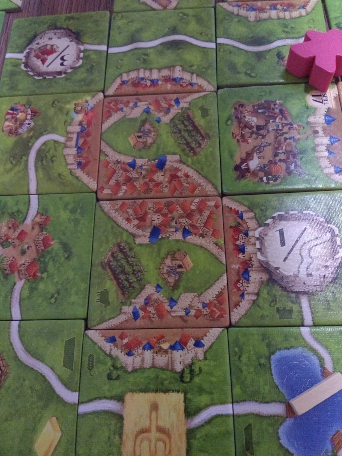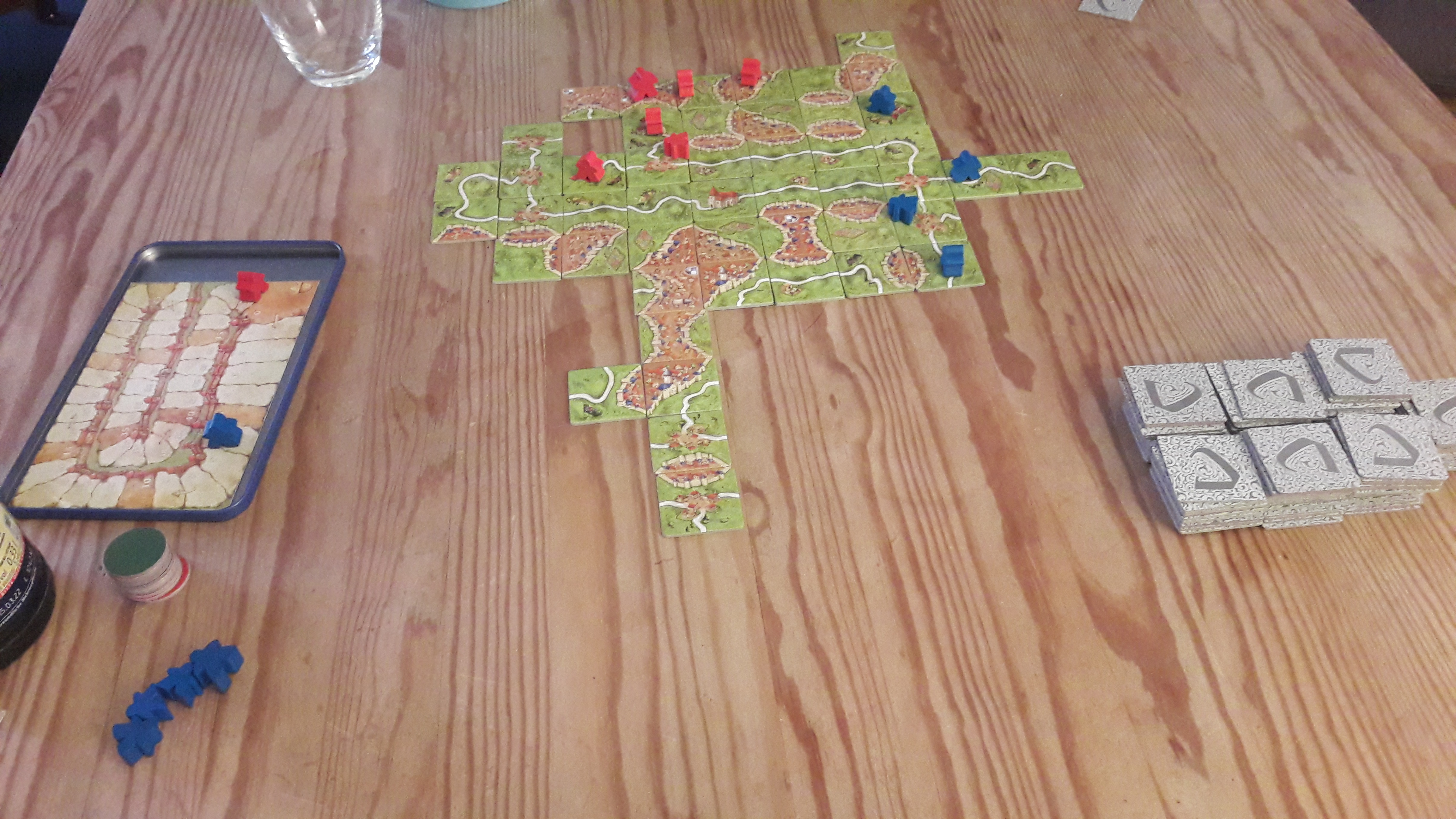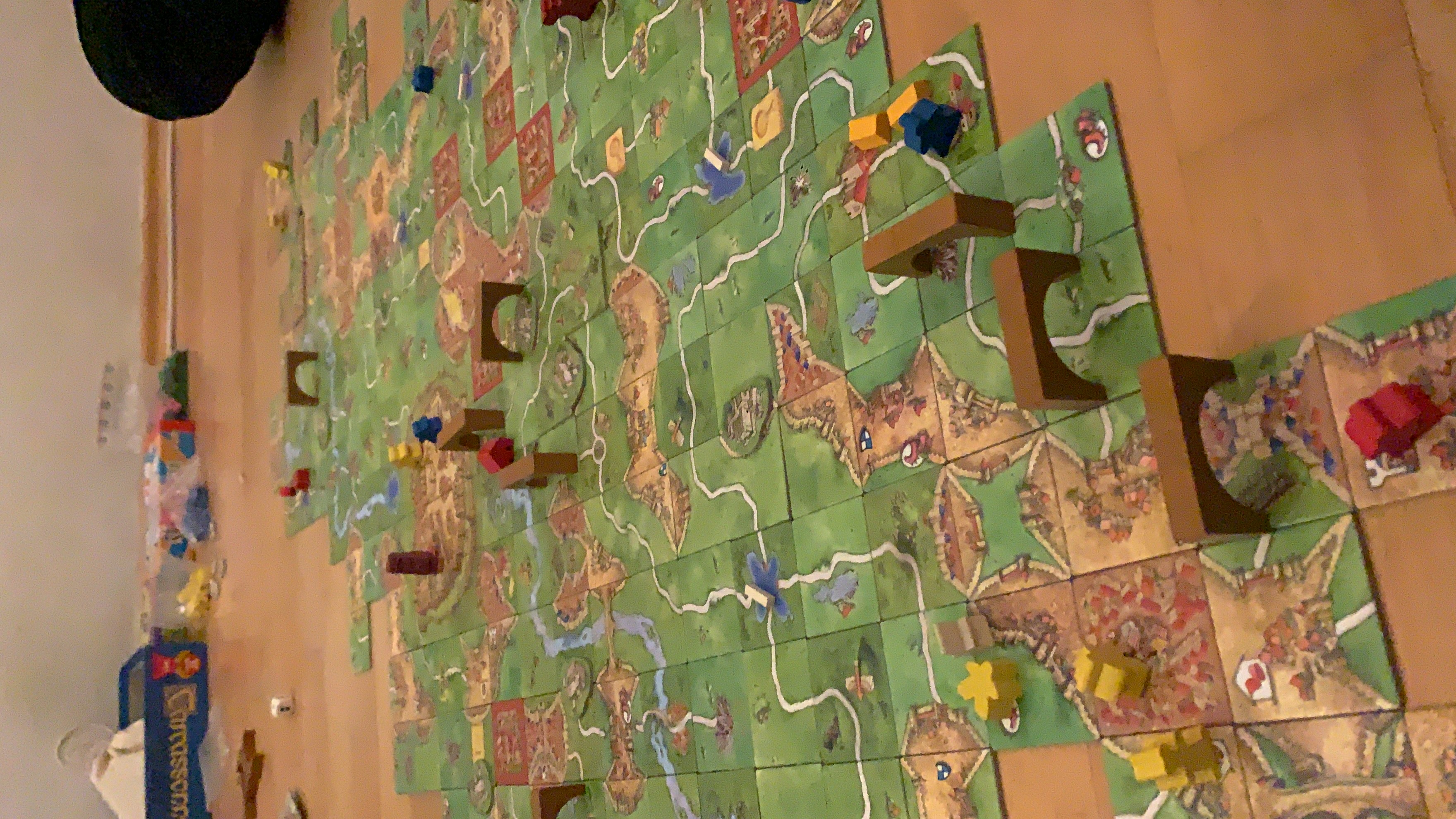 Carcassonne. Ich hab es zwar schon einenWeile bei jedem Besuch dabei, aber es kam jedes Mal leider ungespielt wieder mit nach Hause…
