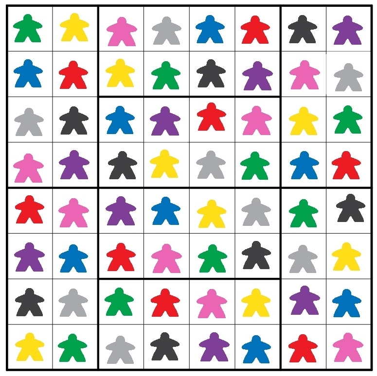 Was wolltest du dann? Beim Sudoku dürfen keine Zahlen (Meeple) doppelt im Kästchen, Reihe und Spalte vorkommen.Fritz_Spinne hat geschrieben:Maik, du hast die größtmöglichste Unordnung angestellt - das ist es nicht, was ich wollte.