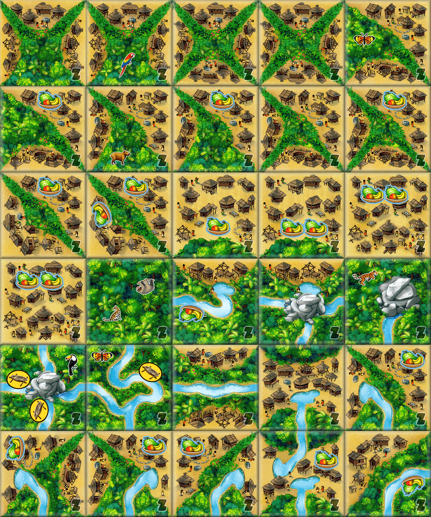Über Erweiterungssymbole habe ich auch schon nachgedacht. Da die Graphik der Plättchen sehr detailliert ist und sehr viele Tiere und ähnliches vorhanden sind, muss man aufpassen, dass man das Erweiterungssymbol nicht mit der normalen Graphik verwechseln kann. Vielleicht sollte man etwas völlig anderes mal ausprobieren, was man auf den ersten Blick als Erweiterungssymbol erkennt.