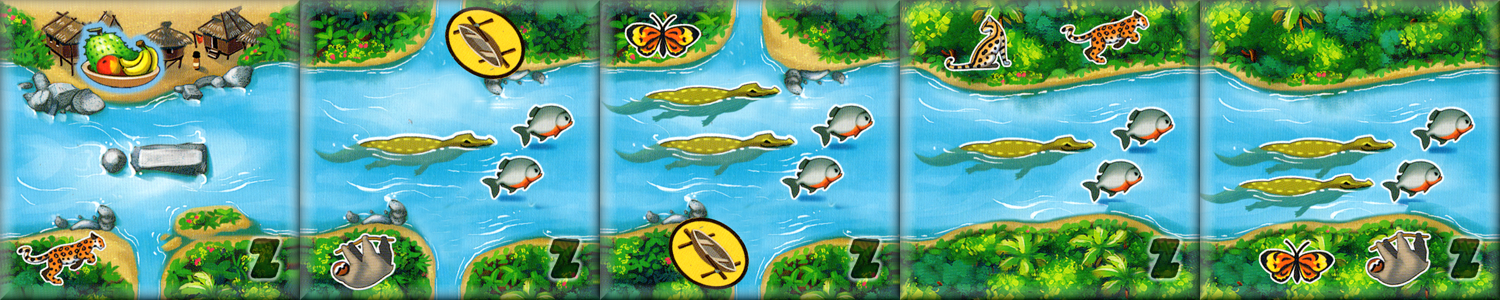 Ich hatte letztes Wochenende das Vergnügen, mit meinem Enkel Amazonas zu testen. Zunächst mit den im Spiel vorhandenen Karten: Wie bereits an anderer Stelle angeführt, wurden hauptsächlich im Bereich der Starttafel Karten angelegt. Je länger der Amazonas wurde, desto weniger wurde in die Breite gebaut.