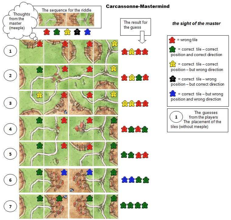 Die Idee für CC-MasterMind kam letztes Jahr von Quevy und bei CarcC hatten wir ein paar Runden gespielt. Ich war auch total begeistert und finde dies immer noch klasse.