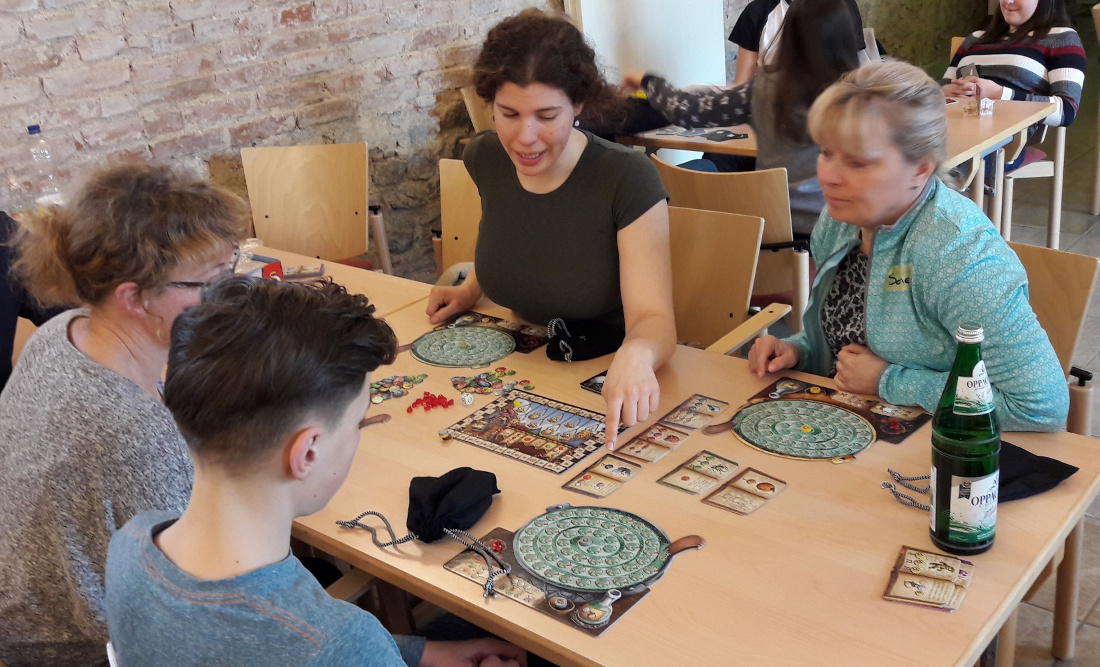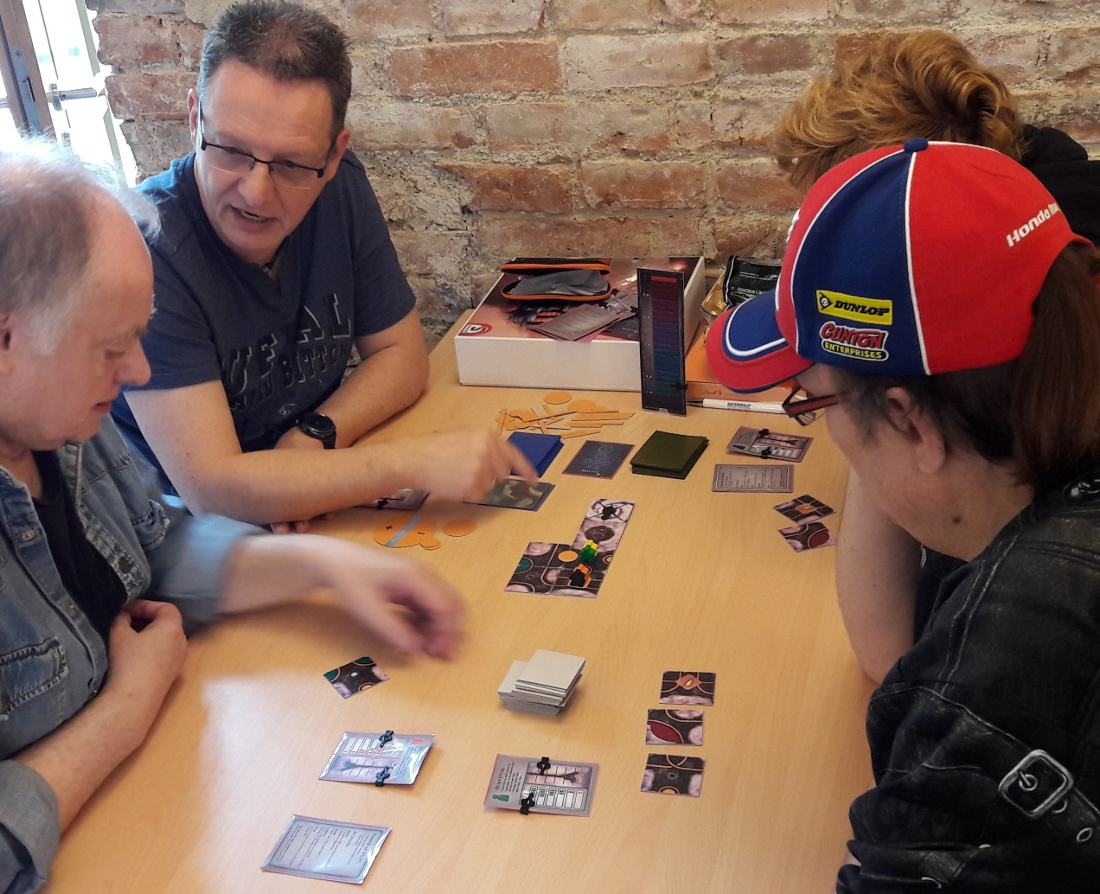 Was nun die anderen Spiele angeht, da hatte Udo für reichlich Zeugs gesorgt. Nahezu das komplette aktuelle Programm von HiG, Drei Magier und Schmidt-Spiele hatte er mitgebracht. Und davon wurde reichlich Gebrauch gemacht.