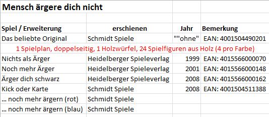 Meine Frau hat sich die Ärger dich, schwarz gewünscht. Unwissend dass es noch andere gibt. Ich habe ihr deshalb die - Jubiläumsedition von Mensch ärgere dich nicht bestellt sowie die oben aufgezählten Erweiterung. Perfekt aber wäre es, wenn ich die erste Ausgabe auch hätte.