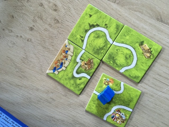 Du kannst auch einen Meeple auf den zweiten Straßenabschnitt (rechts unten) stellen oder einen Meeple auf die Wiese legen